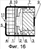 фиг.16 – пирогенератор, шестнадцатый пример исполнения (в аноде есть отверстие и углубление, заполненные материалом сепаратора, а в электролитном материале есть углубление, заполненное материалом сепаратора).