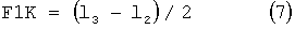 где l1 – расстояние между точками пересечения лучей лазеров с поверхностью жидкости заранее известное из конструкции при расположении лазеров перпендикулярно плоскости измеряемого уровня и параллельно друг другу;