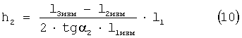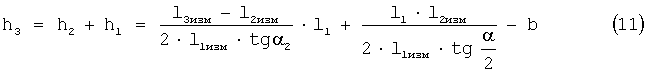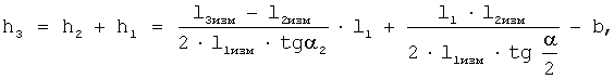 l1 – расстояние между точками пересечения лучей лазеров с поверхностью жидкости, заранее известное из конструкции при расположении лазеров перпендикулярно плоскости измеряемого уровня и параллельно друг другу;