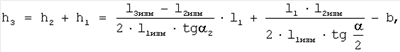 l2 – истинное расстояние между точками пересечения лучей лазеров с поверхностью жидкости при расположении лазеров под углом друг к другу;
