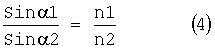 Уровень поверхности легкой жидкости определяется по формуле (3). В точке F лазерный луч преломляется (Фиг.2, В) и в соответствии с законом преломления справедливо выражение: