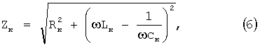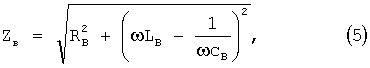 где: R – активное сопротивление, LВ – индуктивность, СВ – емкость, – угловая частота пульсаций потока ( =2 f), f – частота временная. При этом: E – 1, R – 2, C – 3 и L – 4 (см. фиг.16).