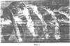 Вернемся к фиг.3. На ней просматриваются темные и светлые полосы, расходящиеся от СТ. Темные – это участки, в которых плотность энергии выше фоновой (участки повышенного гидродинамического давления). Их структура не реагирует на фоновые воздействия, например на умеренный ветер. Они имеют гладкую поверхность. По их распределению на площади можно очертить внешние контуры силового поля, направление его силовых линий и характер поля. Поле является одиночным импульсом энергии, имеющим пологие фронты и перемещающимся вслед за кораблем. Видимые размеры поля имеют порядок: продольный – 650 м, поперечный – 260 м. Поле имеет форму усеченного конуса, ось которого совмещена с осью СТ, малое основание приближено к винту, а большое удалено (см. на фиг.13 области 2 и 3).