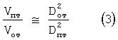 где: Vпт, Vот – средние скорости, Дпт, Дот – средние диаметры сечений объемов. При этом объем ПТ представлен в виде цилиндра, а объем ОТ – в виде полого цилиндра. Более быстрее уменьшение скорости ПТ по сравнению с нарастанием скорости ОТ обусловлено образованием избытка давления в областях 2′ и 3.