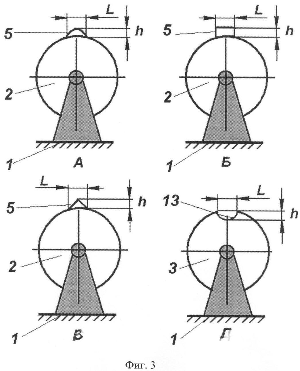 Сущность изобретения поясняется чертежами, где на фиг.1 изображена схема стенда (вид сверху), на фиг.2 – схема стенда (вид слева), на фиг.3 – сечения второго барабана: А – с упором синусоидального профиля, Б – с упором прямоугольного профиля, В – с упором треугольного профиля, Г – с вогнутостью.