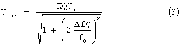Таким образом, при известных значениях f0 и f, измеряя только напряжения Umax и Umin, можно определить добротность Q и связанные с ней функционально физические свойства жидкости. При реализации предлагаемого способа следует иметь в виду, что формулой (4) можно пользоваться только в случае применения детектора с линейной характеристикой. Для детектора с квадратичной характеристикой справедлива формула