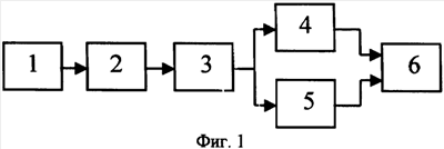 Введены следующие обозначения: 1 – генератор частотно-модулированных колебаний; 2 – резонатор; 3 – амплитудный детектор; 4 – измеритель максимального значения напряжения; 5 – измеритель минимального значения напряжения; 6 – вычислительное устройство.