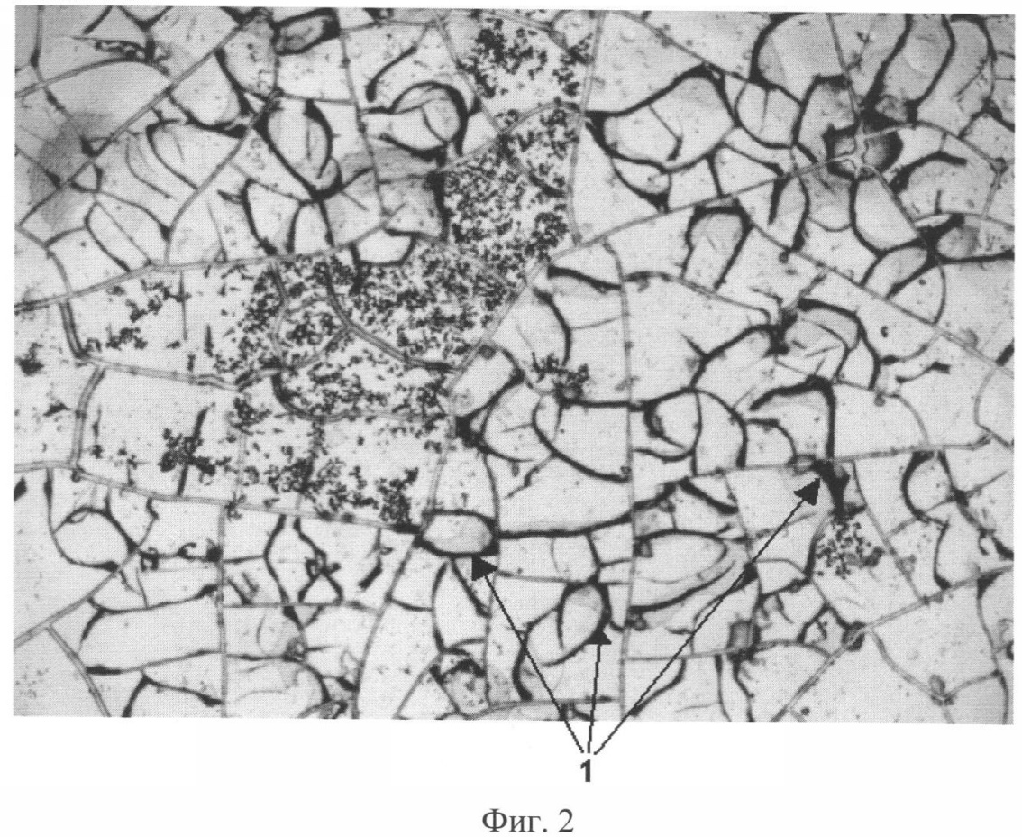 Пример 2. В Нижегородское Бюро СМЭ доставлен труп гр-на С., акт от 12.08.06 г. При наружном осмотре трупа обнаружены следы инъекций. При исследовании было установлено, что рН сыворотки крови составляет 6,5. В центре высохшей капли сыворотки крови выявлено большое количество штриховых трещин (фиг.2).