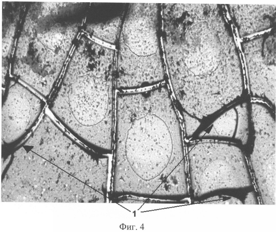 Пример 4. В Нижегородское Бюро СМЭ доставлен труп гр-на С., акт от 20.11.06 г. При наружном осмотре трупа обнаружены следы инъекций. При исследовании было установлено, что рН сыворотки крови составляет 6,7. В центре высохшей капли сыворотки крови выявлено значительное количество штриховых трещин (фиг.4).