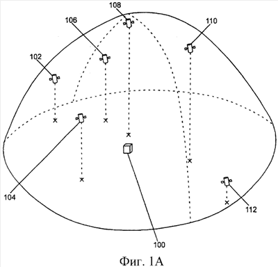 фиг. 1А изображает группу спутников, находящихся в поле зрения приемника системы спутникового позиционирования (ССП),