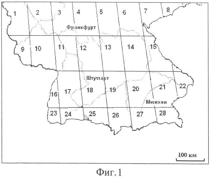 Территория Томской области равнинная, а территория Южной Германии, подобная ей по рельефу, ограничена трапециями №1, 2, 5, 6, 11, 12, 13, 19 (фиг.1).