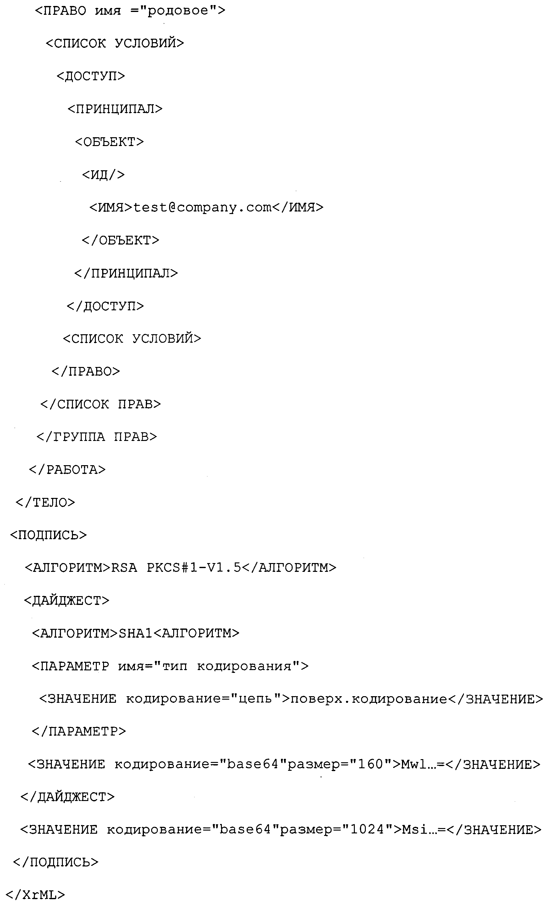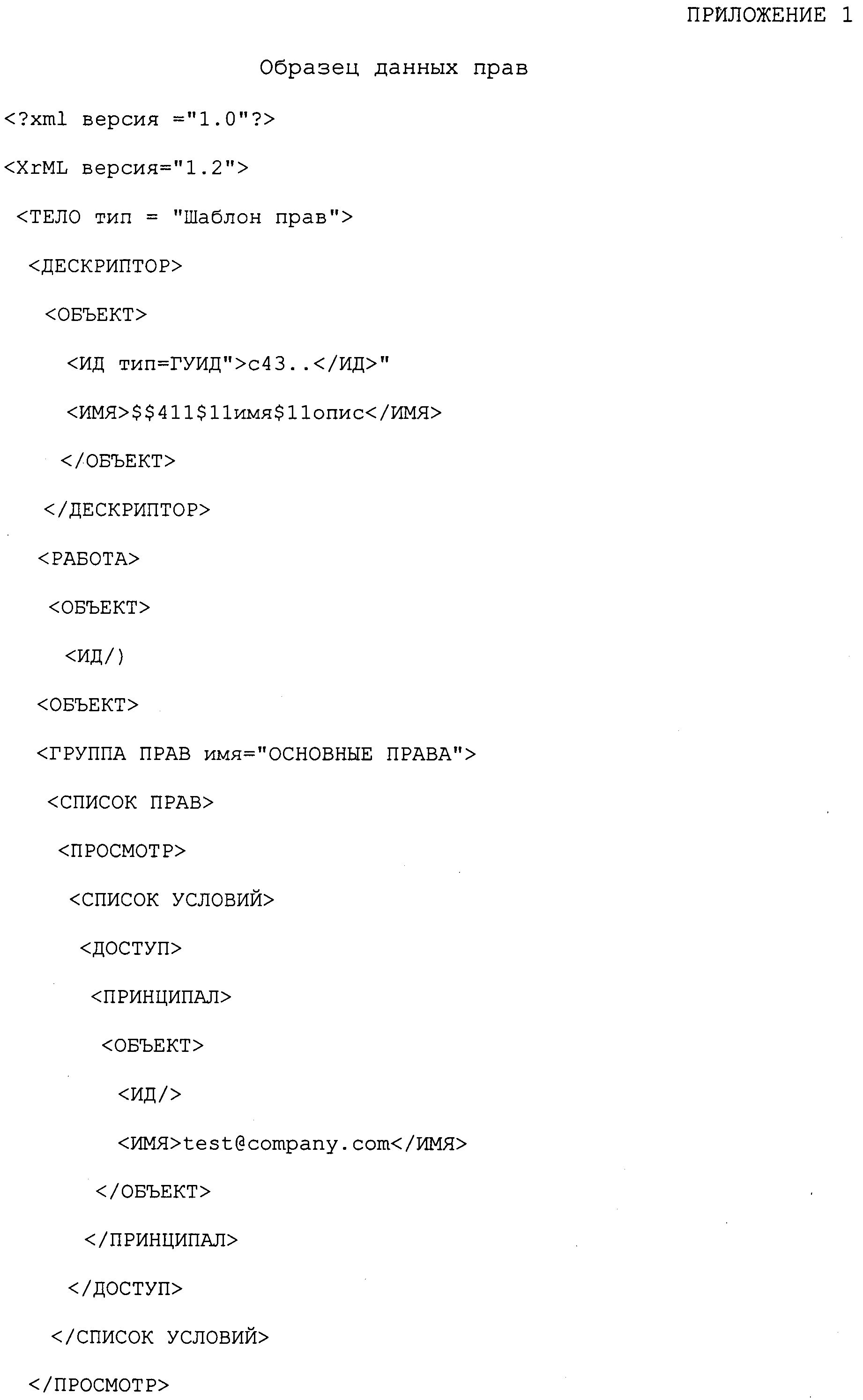 Таким объектом может быть, например, человек, класс людей или устройство. Для каждого такого объекта данные прав также включают в себя перечень прав, которыми обладает данный объект на содержание, и любые условия, которые могут налагаться на все или на любое из этих прав. Такие права могут включать в себя право на чтение, редактирование, копирование, распечатку и т.п. цифрового содержания. Кроме того, права могут быть включительными или исключительными. Включительные права указывают, что определенный пользователь имеет определенное право на содержание (например, пользователь может редактировать цифровое содержание). Исключительные права указывают, что определенный пользователь имеет все права на содержание за исключением тех, которые указаны (например, пользователь может делать с цифровым содержанием все, кроме копирования).