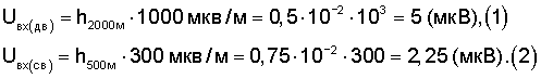 Чувствительность приемника по полю характеризуется напряженностью поля в месте приема сигнала, воздействие которого на приемную антенну развивает в приемнике, настроенном на частоту сигнала, определенную выходную мощность при заданном отношении напряжения сигнала и помех на выходе приемника. Требование чувствительности по полю определяют, исходя из усредненной зависимости напряженности поля внешних помех от частоты. В диапазонах ДВ, СВ в пригородной зоне напряженность поля внешних помех составляет соответственно 100 мкВ/м и 30 мкВ/м. Для уверенного приема согласно действующим стандартам напряженность поля принимаемого радиосигнала превосходит напряженность поля внешних помех и составляет соответственно 1000 мкв/м и 300 мкв/м. Для обеспечения чувствительности приемника по полю величина чувствительности с входа УВЧ 5 в диапазонах ДВ, СВ принимает значение соответственно: