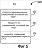 Каждый модем 216 подает сообщения о состоянии на контроллер 214 по соответствующим соединениям 218 передачи данных. На фиг.5 представлена иллюстрация примерного сообщения 500 о состоянии. Сообщение 500 о состоянии включает в себя поле 502 скорости передачи данных модема, поле 504 мощности передачи модема и дополнительное поле 506 вышепредельного (также упоминаемого как ограничивающего скорость) индикатора. Каждый модем сообщает скорость передачи данных переданного в последний раз кадра данных в поле 502 и мощность передачи переданного в последний раз кадра данных в поле 504. Кроме того, каждый модем может дополнительно сообщать, находится ли он в ограничивающем скорость состоянии, в поле 506.