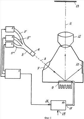 Функционирование описанного выше устройства не изменится при замене ПМС 9 с элементами в виде снабженных соответствующими приводами микрозеркал на ПМС с элементами в виде световых клапанов, работающих на просвет (см. заявку РСТ/WO – A1 – № 62012, 2001).