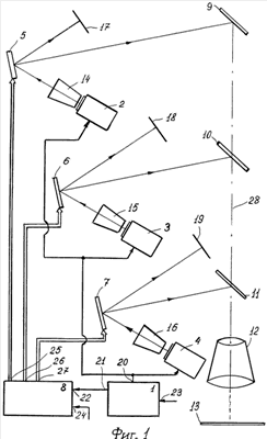 Функционирование описанного выше устройства не изменится при замене ПМС (5-7) с элементами в виде снабженных соответствующими приводами микрозеркал на ПМС с элементами в виде световых клапанов, работающими на просвет, например жидкокристаллическими (см. заявку PGT/WO – A1 – №62012, 2001).