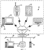 Фиг. 2 представляет собой блок-схему аппаратных компонентов системы, реализованной в сотовой беспроводной сети, обеспечивающей связь между различными беспроводными устройствами, такими как сотовые телефоны и компьютерные устройства.