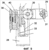 Вращая рукоятку 24, обеспечивается поворот секторов 32, 33. На рукоятке 24 нанесена риска. Шкала со значениями величины баз окуляров расположена на корпусе прибора. Оттянув рукоятку 24 и поворачивая ее, устанавливается и фиксируется нужная для пациента база.