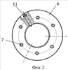 На резьбовой участок оси 1 навернута стяжная гайка 6, на стороне которой, обращенной к бандажу, выполнены равномерно распределенные по окружности шесть резьбовых отверстий 7 (фиг.2), в которые ввернуты упорные болты 8.