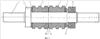 Составной прокатный валок с изношенными калибрами подвергают разборке. Для этого упорные винты 8 вворачивают в стяжную гайку 6, снимая осевое напряжение предварительного сжатия бандажа. Затем выворачивают стопорные винты 11 и свинчивают освободившуюся стяжную гайку 6 с резьбового участка оси 1. После этого с оси 1 последовательно снимают прокладку 3, твердосплавные трубчатые элементы 5 и 4 с изношенными ручьями и прокладку 3, прилегавшую к бурту 2.