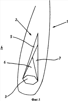 На фиг.1 схематически показан борт 1 покрышки соответствующей изобретению пневматической шины транспортного средства с сердечниковым профилем 2. На этой фигуре речь идет о радиальном разрезе пневматической шины, в котором сердечниковый профиль 2 и сердечник 3 изображены как профиль поперечного сечения, при этом в борте 1 покрышки имеются другие не явно представленные конструктивные элементы шины, например слои корда и усилитель борта. На фигуре представлен правый борт 1 покрышки, а находящаяся под давлением сжатого воздуха внутренняя сторона 4 шины находится на левой стороне борта 1 покрышки. Сердечниковый профиль 2 состоит из трех частей профиля: находящейся внутри, расположенной у внутренней стороны 4 шины части 5 сердечникового профиля, средней части 6 сердечникового профиля и находящейся снаружи части 7 сердечникового профиля. Находящаяся внутри часть 5 сердечникового профиля представляет собой часть, которая в способе изготовления названа первой частью сердечникового профиля. При сборке эти части сердечникового профиля дают клиновидный профиль. Части 6 и 7 сердечникового профиля образуют вторую часть сердечникового профиля, которая предварительно изготавливается снаружи барабана для сборки шин в качестве исходного материала в предварительно сдвоенном на сердечнике состоянии. Часть 5 сердечникового профиля и часть 7 сердечникового профиля состоят из резинового материала с мягкой резиновой смесью, преимущественно с твердостью по шкале А Шора примерно 63, в то время как средняя часть 6 сердечникового профиля состоит из твердой резиновой смеси с твердостью по шкале А Шора около 86. Сердечниковый профиль 2 подходит, в частности, для шин с наклонными полками грузовых автомобилей, которые отличаются особенно высокими боковыми стенками. Высота сердечникового профиля 2 с сердечником 3, измеренная между внешним диаметром сердечникового профиля 2 и внутренним диаметром сердечника 3, составляет от 110 до 150 мм, преимущественно около 130 мм. Благодаря предложенному сердечниковому профилю 2 в целом достигается больший срок службы борта, вследствие чего шины транспортного средства имеют более высокую ходимость, чем существующие шины.
