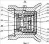 В конце хода отбоя диафрагма 7 под действием перепада давлений между полостями 9 и 4 давит на кольцо 30, которое перемещается влево, сжимая пружину 29, что предотвращает ее выдавливание в зазор между корпусом 10 и баллоном 6.