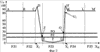 Линия, проходящая через точки ABCDZEFGOHKLM на фиг.2, и линия ABCZEFGOHKLM на фиг.3 – текущее напряжение на входе приемника третьей рельсовой линии РЛ3 (UР), линия PZ – пороговое напряжение занятия, линия РО – пороговое напряжение освобождения.