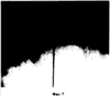 На фиг.3, 4 и 5 представлены в разных плоскостях схемы образования визуальнонаблюдаемой микротрещины заданной ширины и схемы углубления исходной микротрещины при использовании в качестве хладагента дисперсионной системы с твердыми микрочастицами в составе дисперсной фазы. В зоне воздействия лазерного пучка 2 возникают напряжения сжатия 1. При подаче хладагента 7 возникают напряжения растяжения 2, которые и приводят к образованию микротрещины 9. При этом в зоне воздействия максимальных напряжений растяжения микротрещина имеет максимальную ширину h1. Далее под действием объемных напряжений сжатия 3 микротрещина стремится “захлопнуться”, поэтому ширина микротрещины уменьшается до значения h. Одновременно с уменьшением ширины микротрещины от значения h1 до значения h происходит углубление микротрещины от значения 1 до значения (Фиг.5). На Фиг.6 представлена фотография углубленной трещины в стекле. На фотографии представлена микротрещина глубиной 1, полученная при использовании в качестве хладагента воздушно-водяной аэрозоли, а для сравнения представлена трещина глубиной , полученная с использованием в качестве хладагента двухуровневой дисперсной системы. Как следует из представленной фотографии, глубина микротрещины после ее углубления возросла более чем в 10 раз по сравнению с первоначальной трещиной.