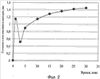 Длительность процесса сбраживания 3 г сахарозы клетками дрожжей, иммобилизованных в капсулах с жидким ядром, составила 80 минут. Данный пример поясняется графическим материалом, где на фиг.3 показан график зависимости времени сбраживания сахарозы от наличия в капсуле жидкого ядра. Капсулы с жидким ядром обладают малым внутридиффузионным сопротивлением, что приводит к ускорению процесса спиртового брожения.