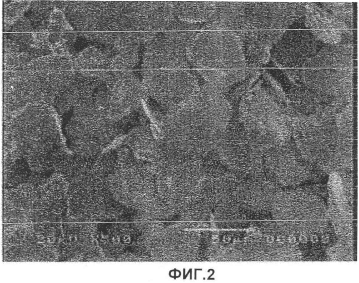 Фиг.2 – фотография, показывающая СЭМ-изображение порошка сплава после того, как была выполнена обработка перемешиванием с использованием атриттора согласно одному из вариантов воплощения настоящего изобретения;