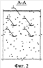 Рукавные элементы изготавливаются, например, из полипропилена по ТУ-8237-012-58584000-05, предпочтительной длиной 0,4-2,0 м. Рукавные элементы целесообразно укладывать для более плотного размещения в разных направлениях и в несколько слоев (см. фиг.5), при этом концы рукавов размещают таким образом, чтобы после возведения фундаментной плиты, или всей подземной части, или всего здания (время определяется в зависимости от условий строительства) оставалась возможность инъецирования гидроизоляционной смеси в полость рукавов.