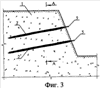 В зоне предполагаемого действия растягивающих напряжений в грунтовом массиве 1 размещают армирующий элемент 2 в виде протяженного рукава 3 из сетчатого или другого крупнопористого полупроницаемого синтетического материала, например полипропилена или стеклоткани. Армирующие элементы 2 могут укладываться в нескольких уровнях на расчетном расстоянии по горизонтали и вертикали. Рукавный элемент 3 в сложенном состоянии может укладываться в плоском или изогнутом положениях как в продольном, так и в поперечном направлениях. Длину, ширину и шаг рукавов принимают исходя из следующих условий.