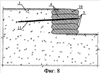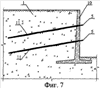 В местах пониженного сопротивления (отпора) грунтового основания 1 под фундаментом 7 здания при инъекции наполнителя 4 рукав 3 расширяется и уплотняет окружающий грунт 1. В местах образования карстовой воронки или полости 8 и отсутствия обжатия грунта 1 рукав 3 разрывается и превращается в инъекционную (бетонолитную) трубу 9, через которую заполняют полость 8 твердеющим или консистентным раствором 4 (см. фиг.6).