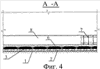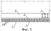 Затем на выровненную поверхность укладывают протяженные рукавные элементы 4 из полимерных тканей. Рукавные элементы изготавливаются, например, из полипропилена по ТУ-8237-012-58584000-05, предпочтительной длиной 0,4-2,0 м. Рукавные элементы целесообразно укладывать для более плотного размещения в разных направлениях и в несколько слоев (см. фиг.5), при этом концы рукавов размещают таким образом, чтобы после возведения фундаментной плиты, или всей подземной части, или всего здания (время определяется в зависимости от условий строительства) оставалась возможность инъецирования гидроизоляционной смеси в полость рукавов. Рукавные элементы при укладке для обеспечения фиксации их положения при раскладке скрепляют между собой.