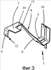 Вырез 8 проходит примерно по половине длины и ширины второй и третьей плоской зоны 6, 7. При этом конец выреза 8 заканчивается скосом 13 во второй плоской зоне 6. Конец выреза 8 в третьей плоской зоне 7 проходит примерно под прямым углом к направлению хода части 1 из листовой стали (у кромки 14). На кромке боковой стороны части 1 из листовой стали в зоне перпендикулярно проходящего конца образован удерживающий выступ, так что, с одной стороны, образуется крюк 15, а с другой стороны, за счет кромки выреза 8, кромки 14 и крюка 15 образуется направляющая сдвига для третьей пластины 4. При этом направляющая сдвига для третьей пластины 4 проходит под прямым углом к направляющей сдвига для второй пластины 3. За счет этого обеспечивается оптимальное ориентирование и согласование с крышей с помощью возможности продольного сдвига третьей пластины 4.
