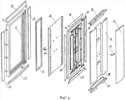 Достоинством является гибкость технологического процесса изготовления за счет использования одного вида профиля открытого сечения для изготовления дверной коробки и дверного полотна.
