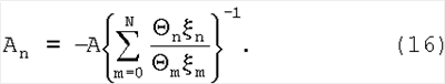 Из этих формул следует, что амплитуды рассеянных вперед и назад нормальных волн одинаковы. Из формул (16) видно, что возбуждение нормальных волн в волноводе не зависит от номера q падающей волны. Это объясняется тем, что резонатор реагирует лишь на давление, а давление, создаваемое падающей волной на жесткой стенке волновода, зависит только от амплитуды этой волны. Поскольку амплитуды Аn обратно пропорциональны величине n, то степень возбуждения нормальной волны возрастает при увеличении ее номера. Наибольшую амплитуду имеет волна, критическая частота которой ближе к частоте звука. В предельном случае совпадения критической частоты для нормальной волны номера l с частотой звука получим