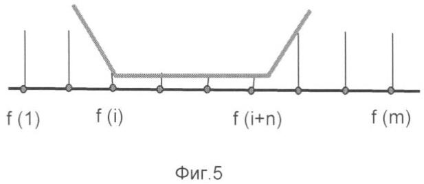 На фиг.4 изображен частотный спектр звуковых волн в диапазоне частот f(l)-f(m), генерируемых буровым насосом 11. Полоса частот [f(i)-(i+n)]П в частотном спектре f(l)-f(m) бурового насоса 11 подавляется режекторным фильтром 14 с целью обеспечения эффективной защиты глубинной информации от помех бурового насоса 11.