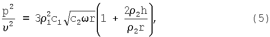 Взаимосвязь между переменным давлением в жидкости и колебательной скоростью стенки трубы описывается следующим выражением [4]