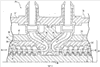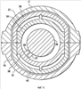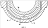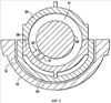 На чертежах, в особенности на фиг.1 и 2, показана паровая турбина, в целом обозначенная как 10, включающая ротор 12, на котором смонтированы лопатки или лопасти 13 турбины, внутренний корпус 14, несущий лопатки 15 статора, и наружный корпус 16, включающий верхнюю и нижнюю половины 17 и 19 наружного корпуса соответственно (фиг.2). Паровая турбина 10 относится к типу турбин с двойным потоком, в которых поток пара, входящий через радиальные входные отверстия, изменяется на, в основном, осевой поток и проходит в противоположных направлениях вдоль пути для пара, как показано стрелками 18. Паровая турбина 10 представляет собой турбину типа с реактивной ступенью, имеющую конструкцию ротора барабанного типа, как схематически изображено. В основном, ступени реактивного типа паровой турбины имеют значительную радиальную длину от диаметра хвостовиков лопаток до наружных кончиков лопаток по сравнению с аналогичным размером для конструкции турбины с активной ступенью. Нужно оценить, что ротор образован из сплошного выполненного за единое целое удлиненного вала, который проходит вдоль противоположных секций турбины с двойным потоком, например вдоль противоположных первой и второй секций турбины, показанных как 22 и 24. Дополнительно, внутренний корпус 14 содержит верхнюю половину 21 внутреннего корпуса и нижнюю половину 23 внутреннего корпуса (фиг.2), типично скрепленных вместе болтами. Далее наружный корпус 16 типично содержит верхнюю половину наружного корпуса и нижнюю половину наружного корпуса, полностью охватывающие внутренний корпус, причем половины корпуса прикреплены болтами одна к другой.