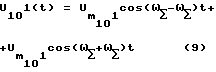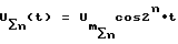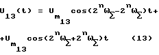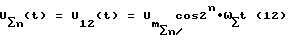 Эти токи образуют на входах ФСС 4 и ФСС 5 трехфазные напряжения обратной и прямой последовательностей мгновенные значения которых описывают выражениями:![]() где UA, UB, UC – фазные напряжения сигнала, Из выражения /2/ следует, что на частоте 1 имеют напряжения обратного чередования фаз A, C, B, на частоте 2 – прямого чередования фаз, A, B, C. Напряжение сигнала обратной последовательности на частоте 1 принимает ФСС 4. Напряжение сигнала прямой последовательности на частоте 2 принимает ФСС 5. Выражение мгновенных значений напряжений сигнала на соответствующих выходах ФСС 4 и ФСС 5 имеют вид:![]() ![]() В связи с тем, что в качестве напряжения гетеродина используют напряжение сигнала кварцованной частоты, фазовые сдвиги опускаем. Эти напряжения получены в широкой полосе ФСС 4 и ФСС 5, их соответственно подают на УПФ 6 и УПФ 7. На выходе УПФ 6 имеют напряжение U1(t), на выходе УПФ 7 – U2(t). ![]() ![]() В умножителе 8 перемножают U1(t) и U2(t), в результате получают напряжения разностной и суммарной частот ![]() В прототипе выделяют разностную частоту, в заявленном устройстве выделяют суммарную частоту с помощью УПФ 9. ![]() где ![]() = 2 f , f = f1+f2= 2f0.Напряжение U (t) подают на вход первого преобразователя 10. Преобразователь состоит из умножителя 101 , который своими объединенными входами подключен к выходу УПФ 9, а выход умножителя 101 подключен к входу УПФ 102, выход которого является выходом преобразователя 10, который подключен к входу второго преобразователя 11. Так как работа преобразователей идентична, рассмотрим работу первого, второго и n-го преобразователей.