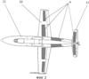 На фиг.2 показано, каким образом могут быть размещены секции электродов для создания электрореактивной тяги на самолете классической аэродинамической компоновки.