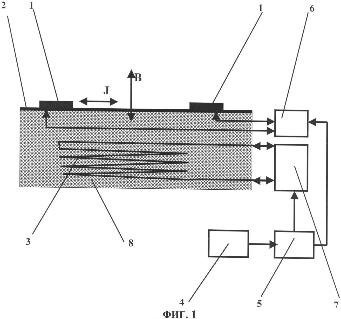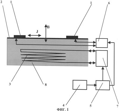 На фиг.1 приведена принципиальная схема устройства, с помощью которого может быть реализован предлагаемый способ получения электрореактивной тяги. На чертеже обозначены: J – направление действия переменного электрического поля; В – направление действия переменного магнитного поля.