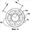 Предпочтительно множество жидкостных каналов 90 расположено по окружности вокруг центрального канала 58 и, кроме того, последовательно расположено в шахматном порядке среди множества входных каналов 68, как показано на Фиг.6. Конечно, должно быть понятно, что входной элемент 56 может быть образован как из одной, так и из обеих рабочих труб 48, 50, 74, 76 цилиндра, и все эти компоненты образуют, по крайней мере, частично, входной элемент. Также должно быть понятно, что входной элемент может быть скомпонован с одиночным входным каналом и/или с одиночным жидкостным каналом и что шесть входных жидкостных каналов являются примером осуществления изобретения. Под используемым здесь термином “множество” следует понимать два или более каналов.