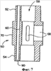 Цилиндр 12 частично образован первым, верхним элементом 48 цилиндра и вторым, нижним элементом 50 цилиндра, соединенными с первым и вторым концами 52 и 54 центрально расположенного входного элемента 56, показанного на Фиг.5-7. Предпочтительно элементы 48 и 50 цилиндра с помощью резьбы подогнаны к внутренней резьбе, сформированной в верхней и в нижней частях внутренней поверхности внутреннего канала 58, тянущегося вдоль центра входного элемента 56. Следует понимать, что элементы 48, 50 цилиндра могут быть прикреплены входному элементу 56 другими способами, например за счет силы тяжести, связующих материалов, силы трения или защелкивающих приспособлений и различных прижимных устройств, и этот перечень не ограничен.