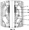 Фрагмент расположения ступеней в секции насоса представлен на Фиг.12. Направляющие аппараты 4 зафиксированы в корпусе 1. Колеса 7 в сборе с промежуточными втулками 38 зафиксированы на валу 2. В качестве материала промежуточной втулки использован материал с высокой стойкость к абразивному износу. Такими материалами являются керамика в виде оксида алюминия или диоксида циркония и карбидные соединения металлов. Комбинация втулки 38 со вставкой 32 образует радиальный подшипник. Тем самым достигается конструкция насоса, предназначенного для добычи углеводородного сырья с большим содержанием абразивных частиц. Проточная и радиально центрирующие компоненты ступени насоса оказываются защищенными от износа за счет конструктивного применения износостойких материалов.