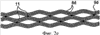 На фиг.2d в разрезе показана гофрированная металлическая пластина 8d, которая может работать аналогично описанным выше пластинам, но при этом предоставляет дополнительные возможности соединения в самых разных комбинациях для варьирования жесткости, как показано на фиг.2е, на которой изображено попарное соединение пластин 8d. Эта гофрированная структура может быть использована в орторадиальной или в радиальной версии в зависимости от кругового или радиального выполнения волнистости. В этом варианте реализации настоящего изобретения опоры 9d выполняют путем установления контакта между противоположными вершинами волнистых профилей соседних пластин. Несмотря на то, что деформация пластин 8d отличается от деформации в предыдущих вариантах выполнения, так как под действием усилия они выпрямляются вместо того, чтобы прогибаться, в данном варианте выполнения работа прокладки происходит аналогичным образом. Необходимо предпринимать меры предосторожности, чтобы избежать проскальзывания пластин 8d в тангенциальном направлении. Поэтому их можно закреплять вместе с опорами при помощи сварных швов 11, заклепок и т.д.