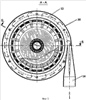 1. Сепаратор-пароперегреватель, включающий корпус с трубным пучком из спиральных конических змеевиков, вокруг которого расположено сепарационное устройство, состоящее из поворотных лопаток и пакетов жалюзи, камеру для подвода греющего пара, выходной патрубок перегретого пара, сепаратосборник и камеру отвода конденсата греющего пара, отличающийся тем, что на наружной поверхности корпуса размещен кольцевой коллектор, сообщающийся с внутренним объемом сепаратора через кольцевую щель в корпусе, внутри кольцевого коллектора установлена перфорированная обечайка, в нижней его стенке имеется трубопровод для отвода отсепарированной влаги, а входной патрубок влажного пара кольцевого коллектора расположен по касательной к корпусу сепаратора-пароперегревателя, при этом сепаратосборник размещен на нижнем днище сепаратора-пароперегревателя и выполнен в виде цилиндрического сосуда с размещенными в нем соосно цилиндрическими обечайками и сливным трубопроводом, образующими кольцевые камеры, соединенные трубопроводом, каналом и емкостью с соответствующими ступенями сепаратора, кроме того, камера для подвода греющего пара расположена на верхнем днище сепаратора-пароперегревателя, а камера отвода конденсата греющего пара – на боковой поверхности корпуса в нижней его части.