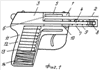На внутренней стенке рукояти (не показано) шарнирно закреплен подаватель 21 патронов (фиг.3) с отгибом 22, выступом 23, продольной прорезью 24.