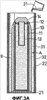 Фиг. 3А – вид в сечении, показывающий способ заполнения взрывчатым веществом из смеси аммиачной селитры и жидкого топлива пространства между “красным” боеприпасом и цилиндром первым способом формирования слоя взрывчатого вещества.